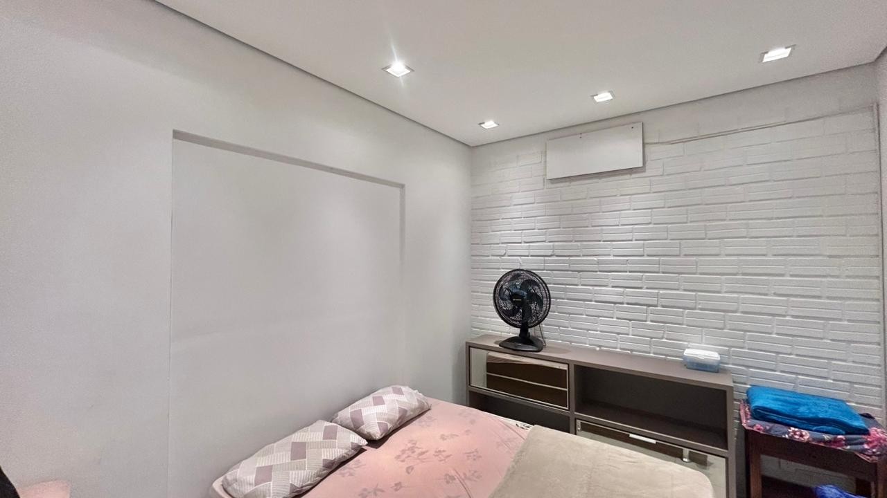 Sala espaçosa com ar condicionado e área de estar convidativa