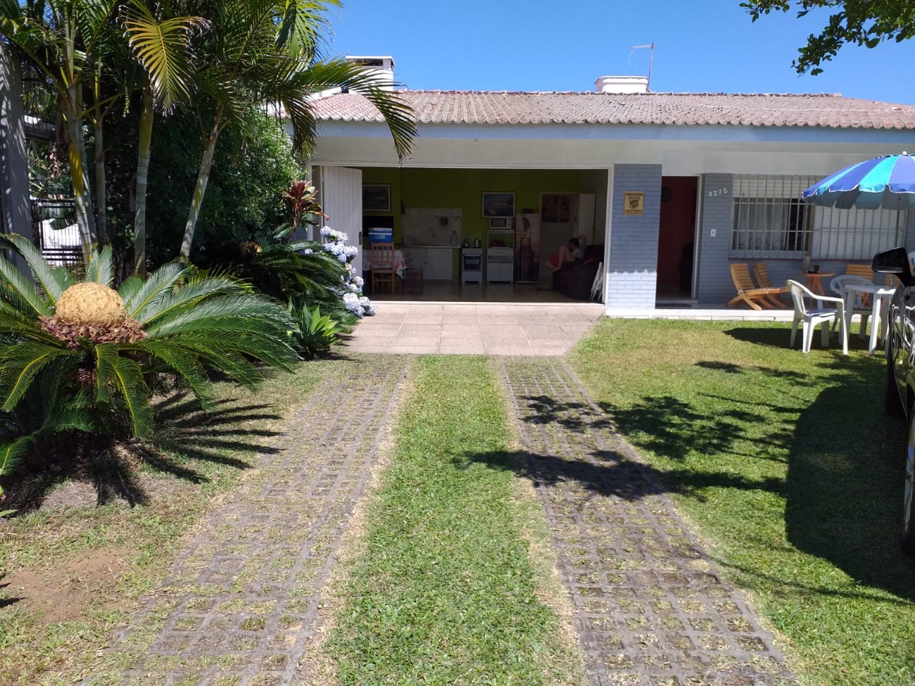 Com churrasqueira, garagem e estacionamento para carros, mesas e guarda sol, cama de solteiro e de casal, mesa de jantar, TV, Wi-Fi, portão eletronico, cozinha completa e tudo que você precisa para passar suas férias na praia!